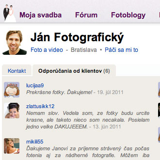 - Mojasvadba.sk je stránka pre nevesty, kde diskutujú s inými nevestami, čítajú články atď. Stránka okrem iného obsahuje kategóriu Profesionáli, v ktorej nevesty nájdu rôzne ponuky svadobných služieb.